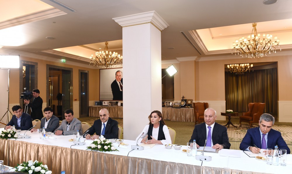 Birinci vitse-prezident Mehriban Əliyeva görüşdə çıxış edib.
