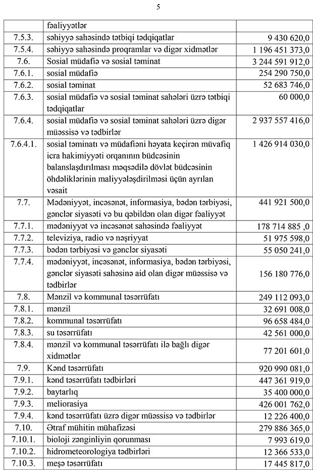 Həmçinin, Azərbaycan Respublikasının 2020-ci il üzrə daxili dövlət borclanmasının yuxarı həddi (limiti) 400 milyon manat, xarici dövlət borclanmasının yuxarı həddi (limiti) 1 milyard manat təsdiq edilib. İl ərzində veriləcək dövlət zəmanətlərinin məbləğinin yuxarı həddi (limiti) də 1 milyard manat məbləğində təsdiq edilib.