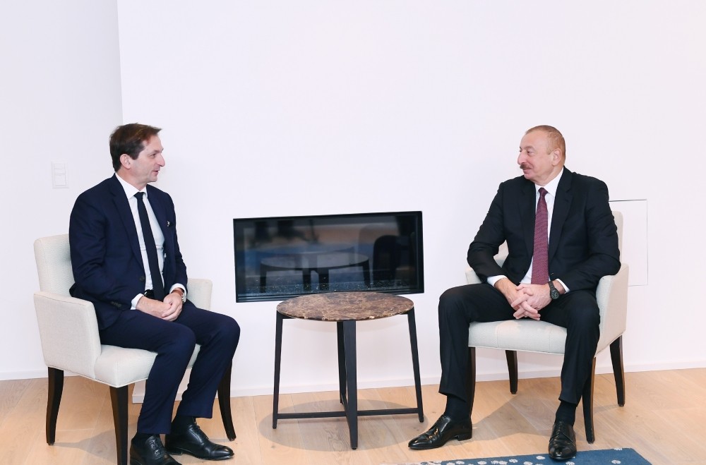 Yanvarın 22-də Davosda Azərbaycan Respublikasının Prezidenti İlham Əliyev “SUEZ Group”un yeni baş icraçı direktoru Bertran Kamusla görüşüb.