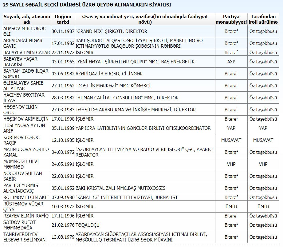 Qeyd edək ki, Bakı şəhərinin 29 saylı Səbail seçki dairəsinin 6 saylı seçki məntəqəsində 574 seçici qeydiyyata alınıb. Bu seçki dairəsi üzrə 20 namizəd mübarizə aparır.