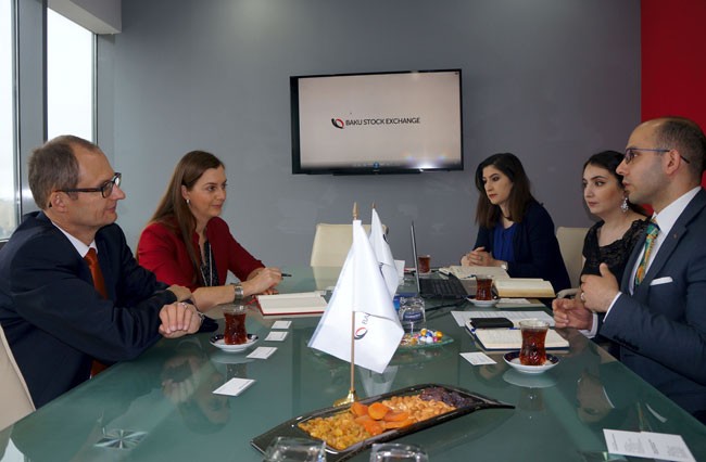 13 aprel 2017-ci il tarixində Bakı Fond Birjasının İdarə Heyətinin sədrinin səlahiyyətlərini icra edən cənab Vüqar Namazov İsveçrənin ölkəmizdəki Fövqəladə və Səlahiyyətli səfiri cənab Filip Stalder və İsveçrənin İqtisadi Məsələlər üzrə Dövlət Katibliyinin (SECO) regional direktor müavini xanım Simon Haeberlini qəbul etmişdir.