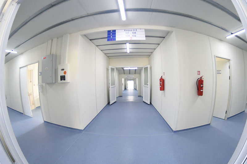 Üç korpusdan ibarət, ümumilikdə, 100 palatada 200 çarpayı yeri olan modul tipli xəstəxana kompleksində orta-ağır simptomlu infeksion xəstələrin qəbulu və müalicəsi üçün hərtərəfli şərait yaradılıb. Ehtiyac yaranacağı təqdirdə, əlavə avadanlıqlar təchiz olunmaqla palataların reanimasiyaya çevrilməsi mümkündür.