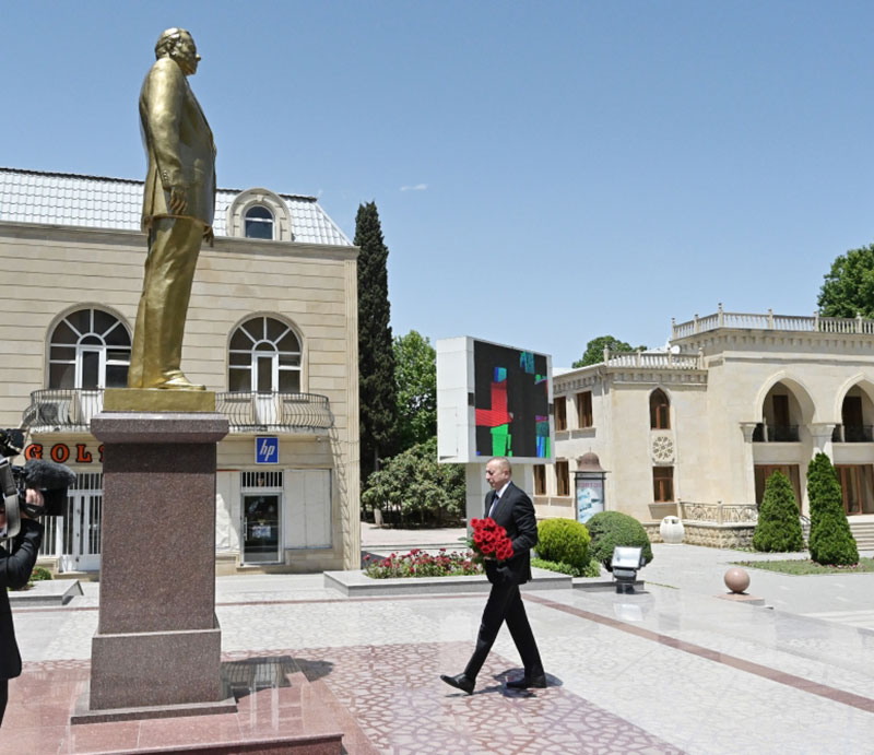 Dövlət başçısı ümummilli lider Heydər Əliyevin Tərtər şəhərinin mərkəzində ucaldılmış abidəsini ziyarət edərək önünə gül dəstəsi qoyub.