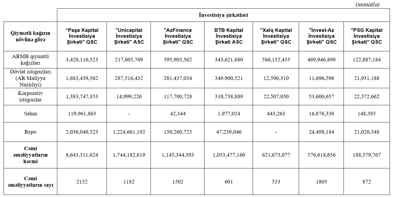 İnvestisiya şirkətlərinin dövriyyələri açıqlandı - SİYAHI