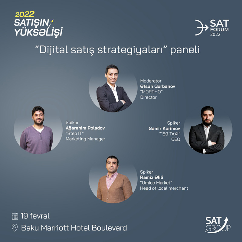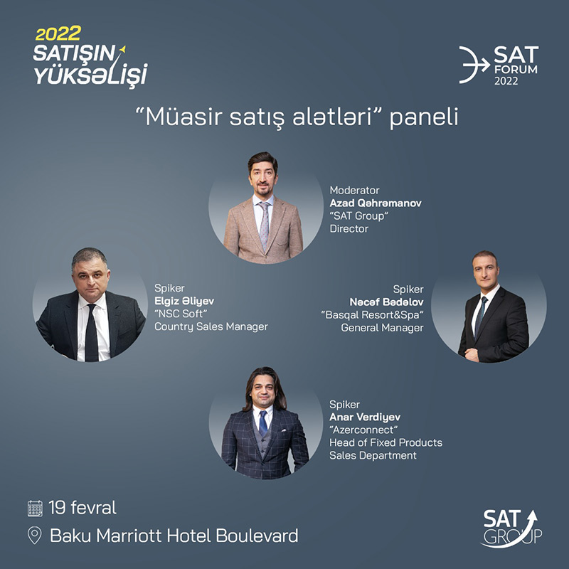 Fevralın 19-da sahibkarlar, CEOlar, satış rəhbərləri, menecerlər “2022 - Satışın Yüksəlişi” mesajı ilə Baku Marriott Hotel Boulevard-da bir araya gələcək. Satış üzrə ilin ilk vacib forumu 3 paneldə aparılacaq: