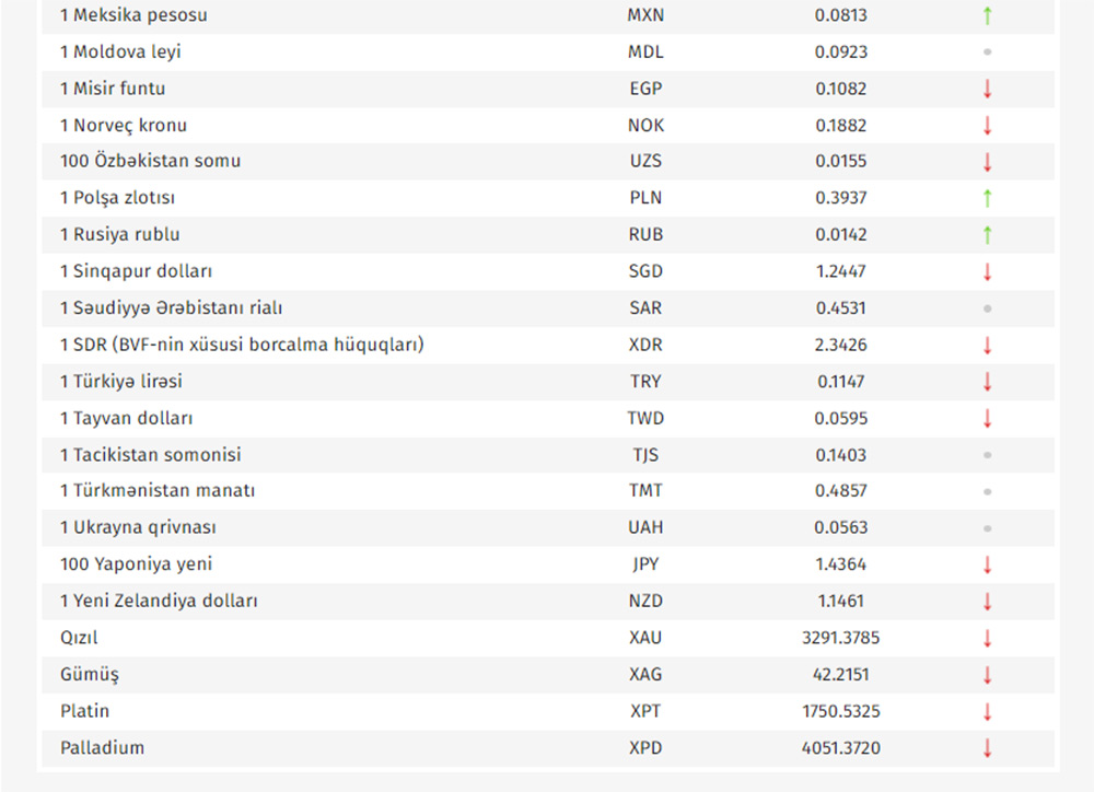 Mərkəzi Bank 2026-cı ilin ilk iş gününün rəsmi məzənnəsini açıqladı